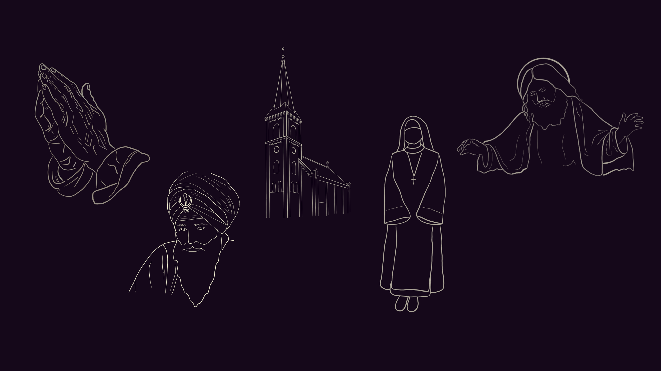 Im Fokus des Gestaltungsprozesses stand die Frage, wie Menschen mit einem Exponat interagieren. Der Aufbau folgt ihrer natürlichen Wahrnehmung: Zuerst sehen sie die Wand mit fünf Köpfen, die jeweils eine Kopfbedeckung aus einer Religion tragen. Daneben befinden sich Steckbriefe mit Basisinfos. Ein interaktiver Tisch daneben ist durchgehend aktiv und zeigt per Projektion, wie man die leuchtenden Pucks auflegt, um mehr zu erfahren. Je nach Platzierung erhält man Inhalte zu Herkunft, Aussehen oder Tragweise der jeweiligen Kopfbedeckung – unterstützt durch Illustrationen und kurze Erklärtexte.